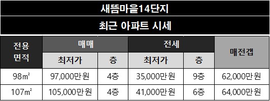 - Q. 새뜸마을14단지의 매매가는 얼마인가요?